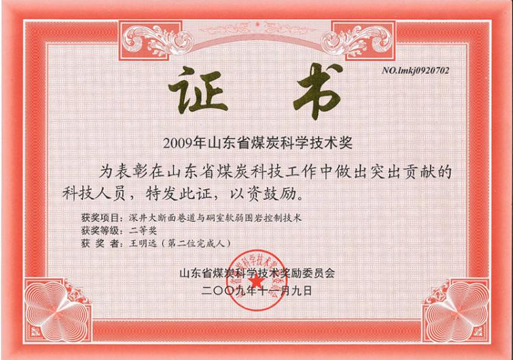 中國煤炭工業(yè)科學(xué)技術(shù)獎二等獎
