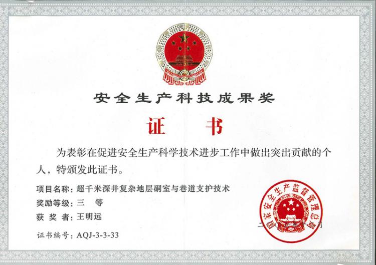 安全生產(chǎn)科技成果獎三等獎