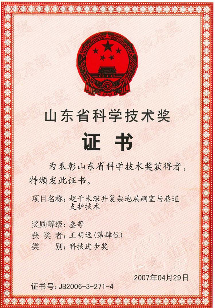 山東省科學(xué)技術(shù)獎三等獎